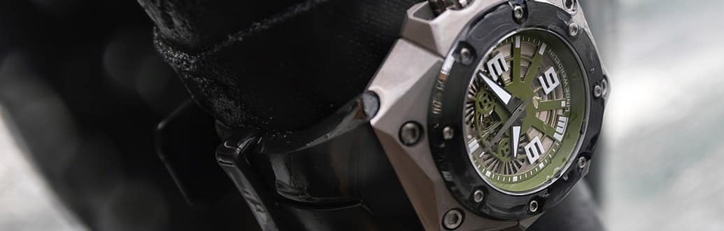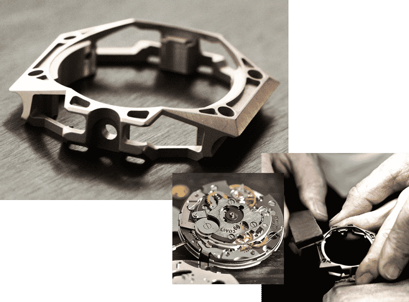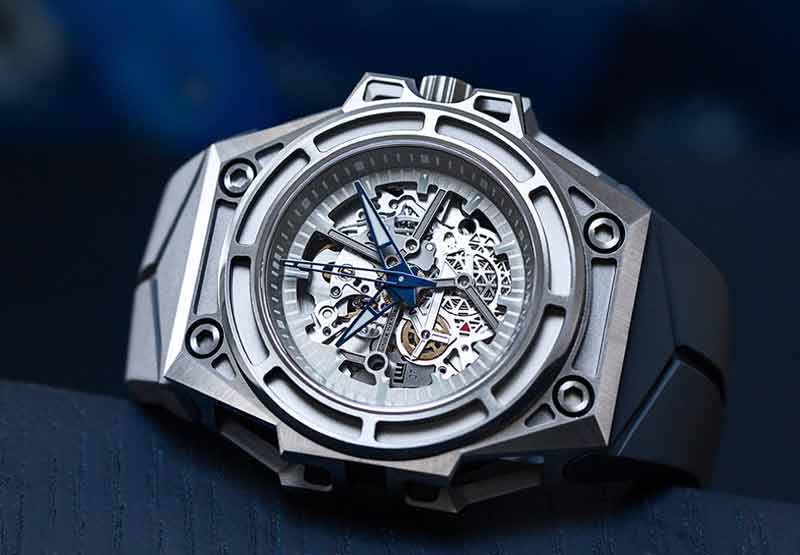 The parts left in the dial – the skeletonised plates, gears, springs, rubies and so on – are there only because they are absolutely essential. The approach to weight-reduction is one of making no compromises, and everything has to be stripped down where possible, without losing any strength in the construction and leaving the timepiece in ruin. As the design is inspired by active lifestyles and timepiece is weakened to the point where it cannot be used for skiing, there’s no point of its existence.