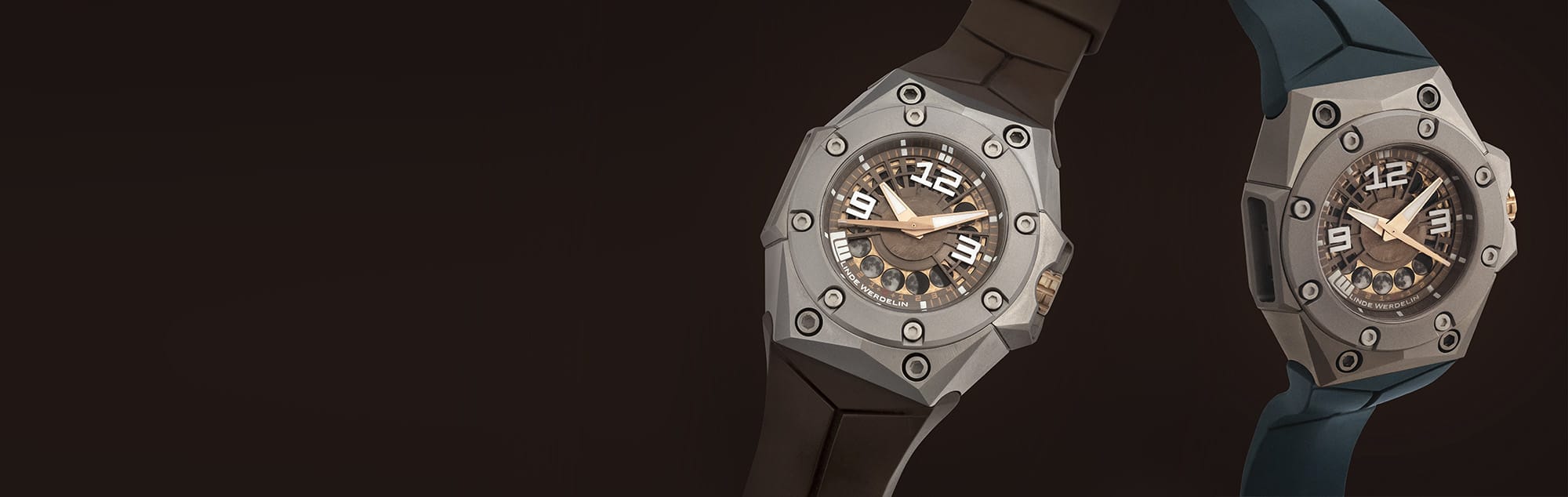 In a seasonal interpretation of the highly technical Oktopus family, made for divers and created for the Danish navy special forces, the Oktopus Moon features a five-layer skeletonised dial in bronze and gold satin finish hands.
