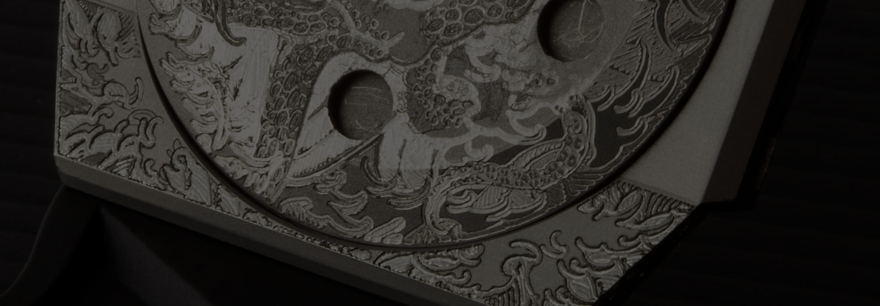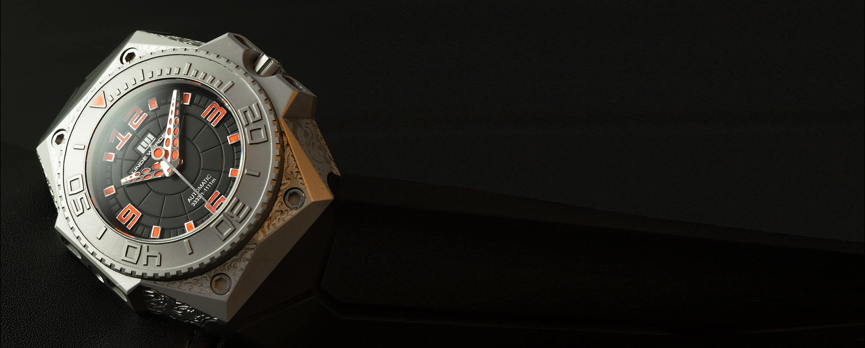 As Henning created the drawing, we spoke to our team in Switzerland about how to get it onto the case, which facets could be engraved and which not. As an added detail we adorned the hands with illusions of tentacle suction cups in orange. The result was, we thought, extraordinary.